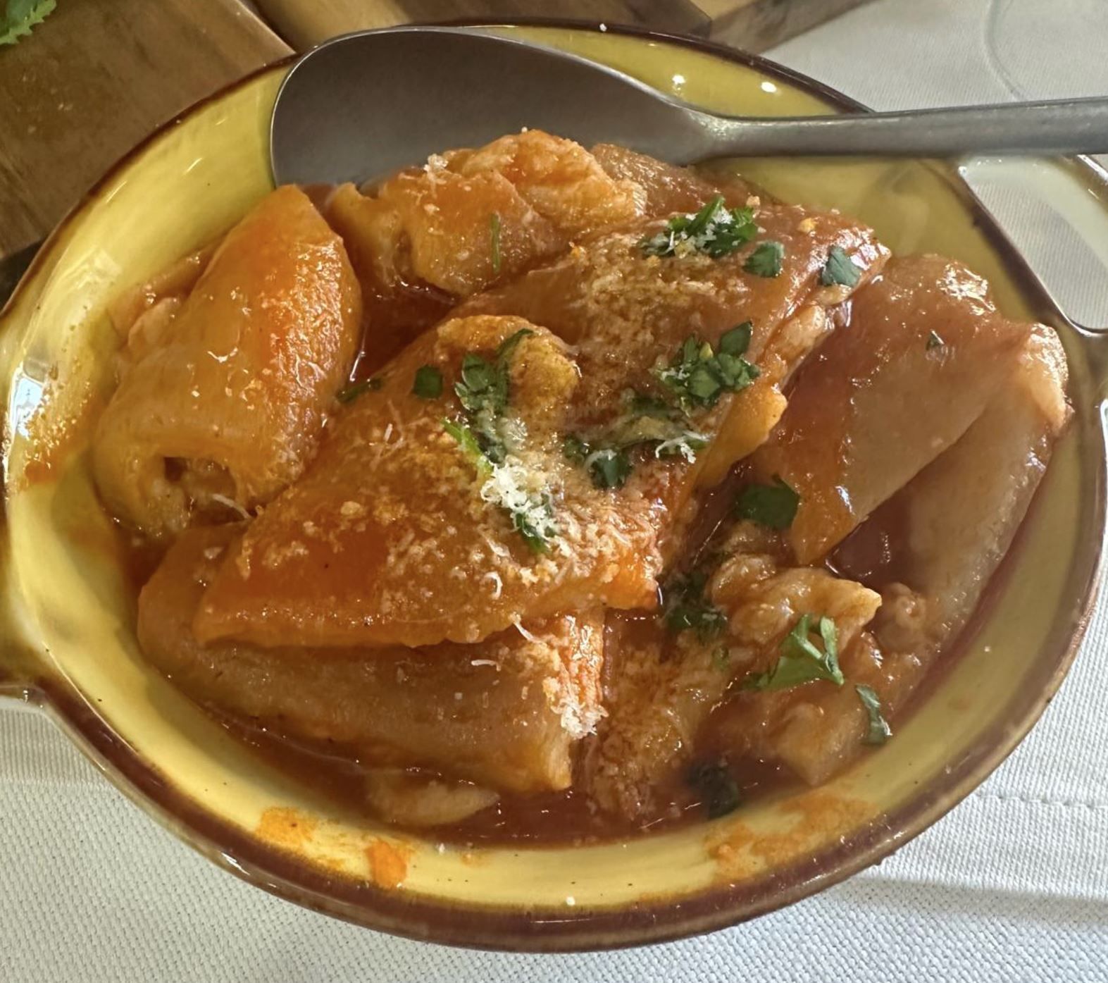 La trattoria celebra soprattutto la cucina di carne, con piatti ricchi e saporiti come la braciola alla contadina, lo spezzatino con patate e piselli, le polpette della nonna e la parmigiana di melanzane. Per chi ama i sapori intensi, la grigliata di carne e la tagliata di manzo con rucola e scaglie rappresentano un’esperienza completa. È disponibile anche il menù fisso, un percorso completo che comprende antipasto, primo a scelta, secondo, frutta o dessert, acqua e vino locale, ideale per vivere la tradizione in modo autentico e conviviale.